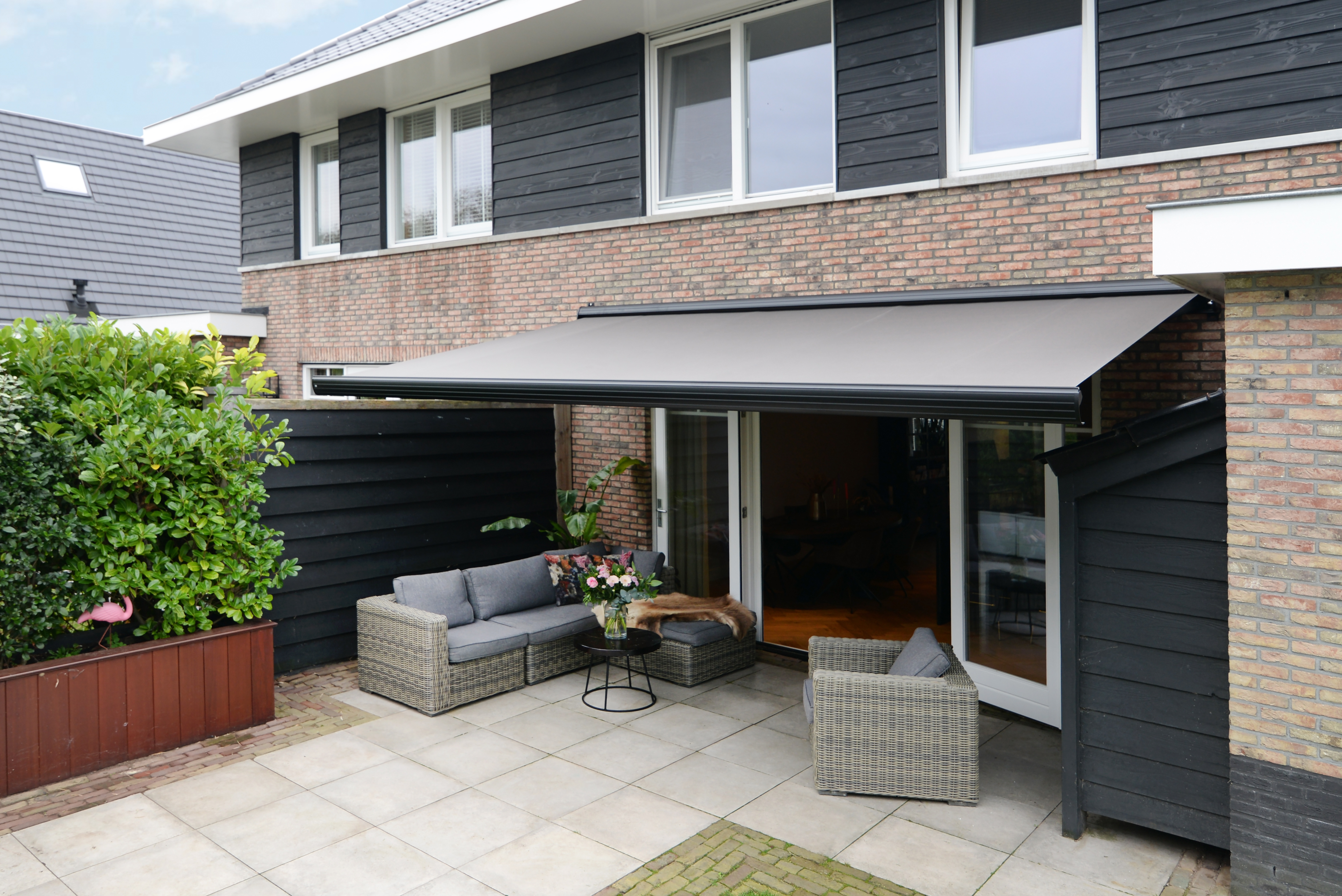 Knikarmscherm Ibiza Basalto – Wij monteren, jij geniet!